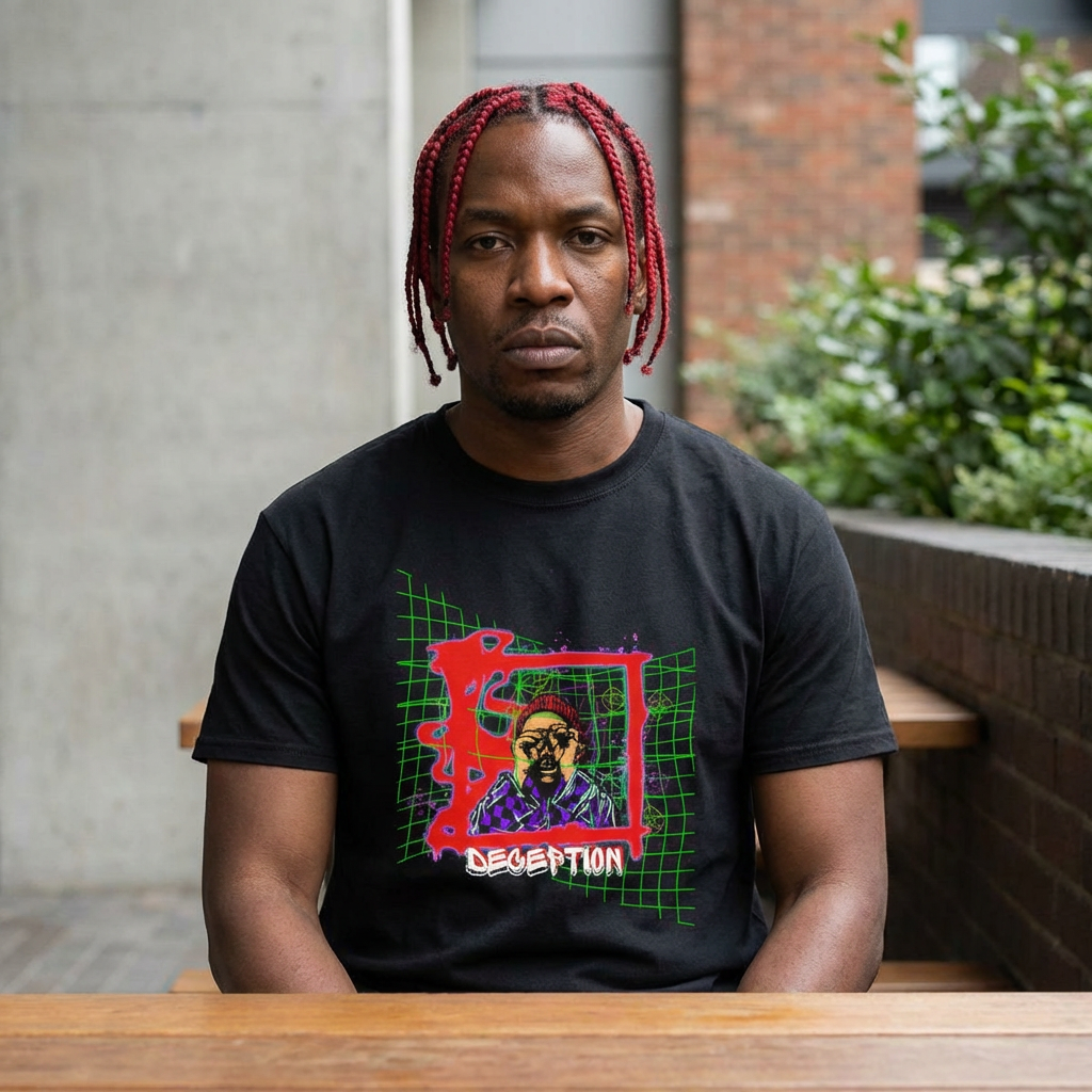 Sleeve prints (for Print Clever and Underground Threads) and inner neck labels are printed using Direct-to-Film (DTF) printing, ensuring crisp, detailed designs. Meanwhile, the remaining print areas are produced with Direct-to-Garment (DTG) printing.